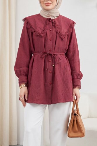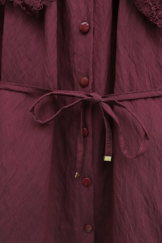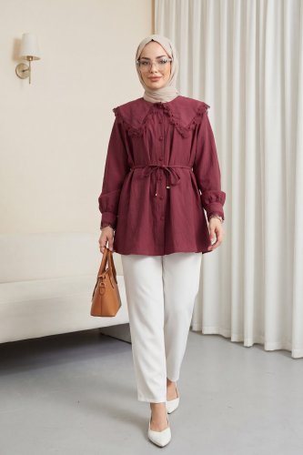• Bebe Yaka Fistolu Beli Bağcıklı Modal Tunik Bordo