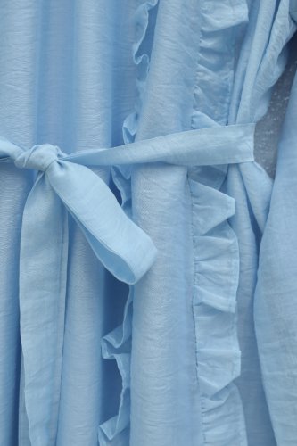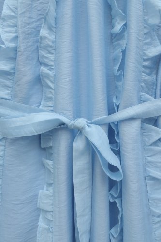 • Önü Fırfırlı Beli Kemerli Kolu Lastikli Astarlı Cupra Elbise Bebe Mavi