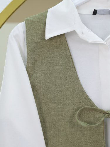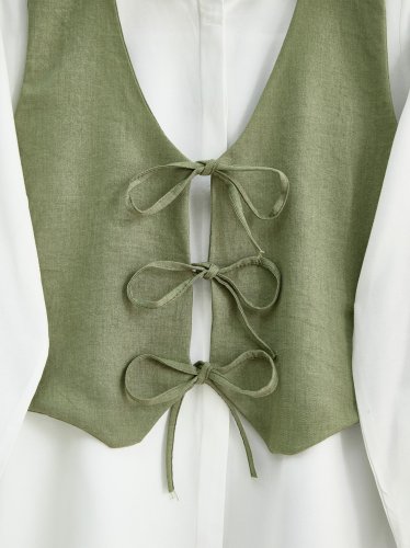 Önü Bağlamalı Yelek Pantolon İkili Takım Haki