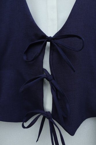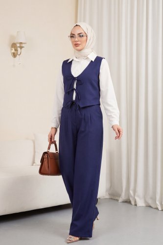 • Önü Bağlamalı Yelek Pantolon İkili Takım Lacivert