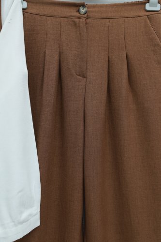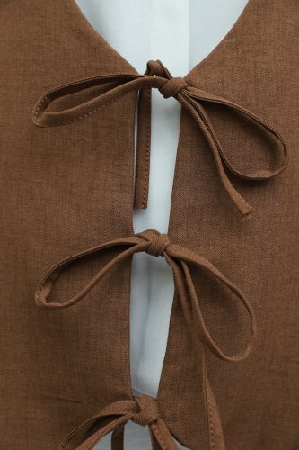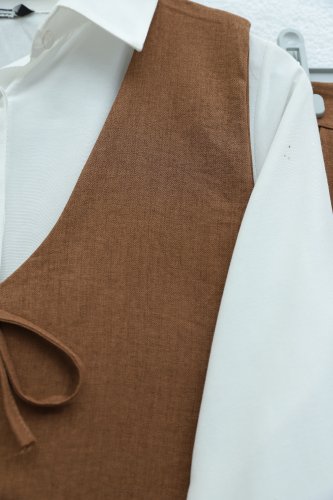 Önü Bağlamalı Yelek Pantolon İkili Takım Taba