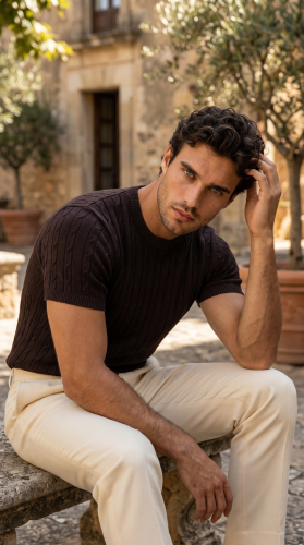 • Erkek Örgü Desen Bisiklet Yaka Triko Tişört 100 Pamuk Akrilik