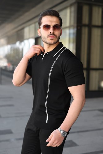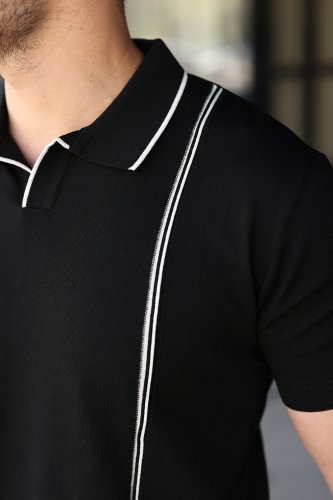 • Erkek Çizgi Detaylı Yakalı Triko Tişört