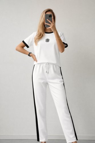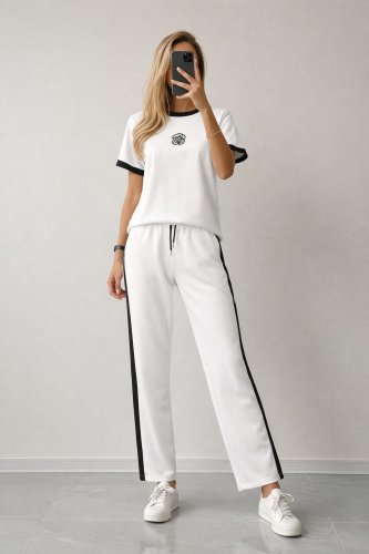 Kadın kısa kollu bisiklet yaka viskon iki iplik bluz ve pantolon ikili takım
