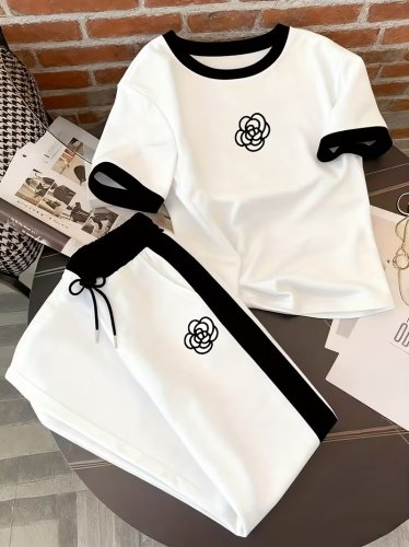 • Kadın kısa kollu bisiklet yaka viskon iki iplik bluz ve pantolon ikili takım