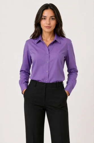 Uzun Kol Gömlek Düğmeli Klasik Yaka Günlük ve Ofis Şıklığına uygun Mor