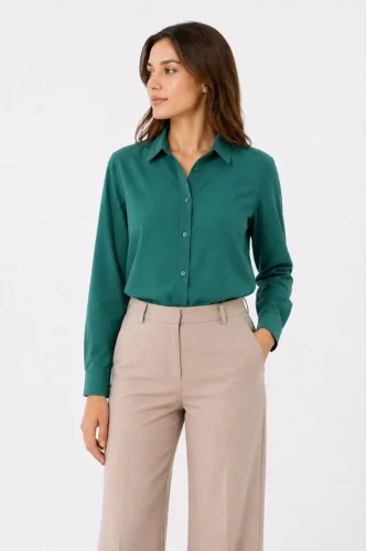 Uzun Kol Gömlek Düğmeli Klasik Yaka Günlük ve Ofis Şıklığına uygun Çimen Yeşili