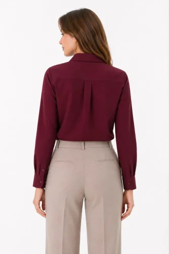 Uzun Kol Gömlek Düğmeli Klasik Yaka Günlük ve Ofis Şıklığına uygun Bordo