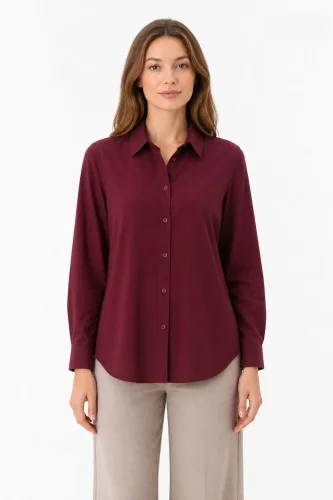 • Uzun Kol Gömlek Düğmeli Klasik Yaka Günlük ve Ofis Şıklığına uygun Bordo